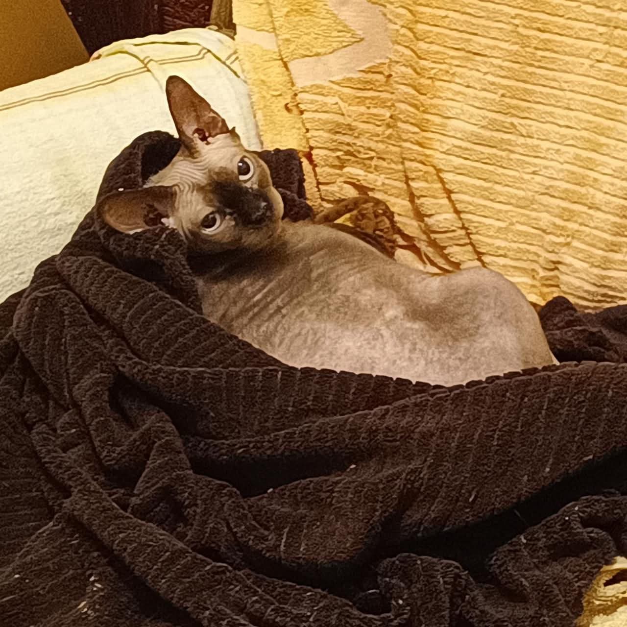 Wir können aktuell nicht sagen, ob Emma gut mit anderen Katzen zurecht kommt, als sie im Käfig saß, hat sie jedoch völlig unbeeindruckt auf die um sie herum laufenden Katzen reagiert.