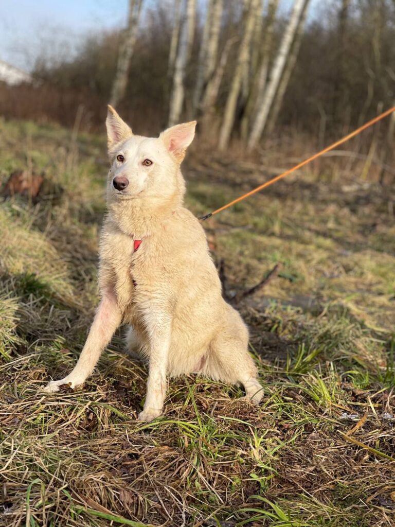 Grace lebt in einem riesigen Tierheim in der Region Moskau. Als Welpe wurde sie mit ihrem Wurf dort ausgesetzt und hat seitdem nichts anderes kennengelernt. Sie lebt in einem engen Zwinger und kommt praktisch nie heraus, es gibt keine Ausläufe, die Außenwelt existiert praktisch nicht. Dennoch ist Grace sehr fröhlich und menschenbezogen, sehr aktiv und freundlich.