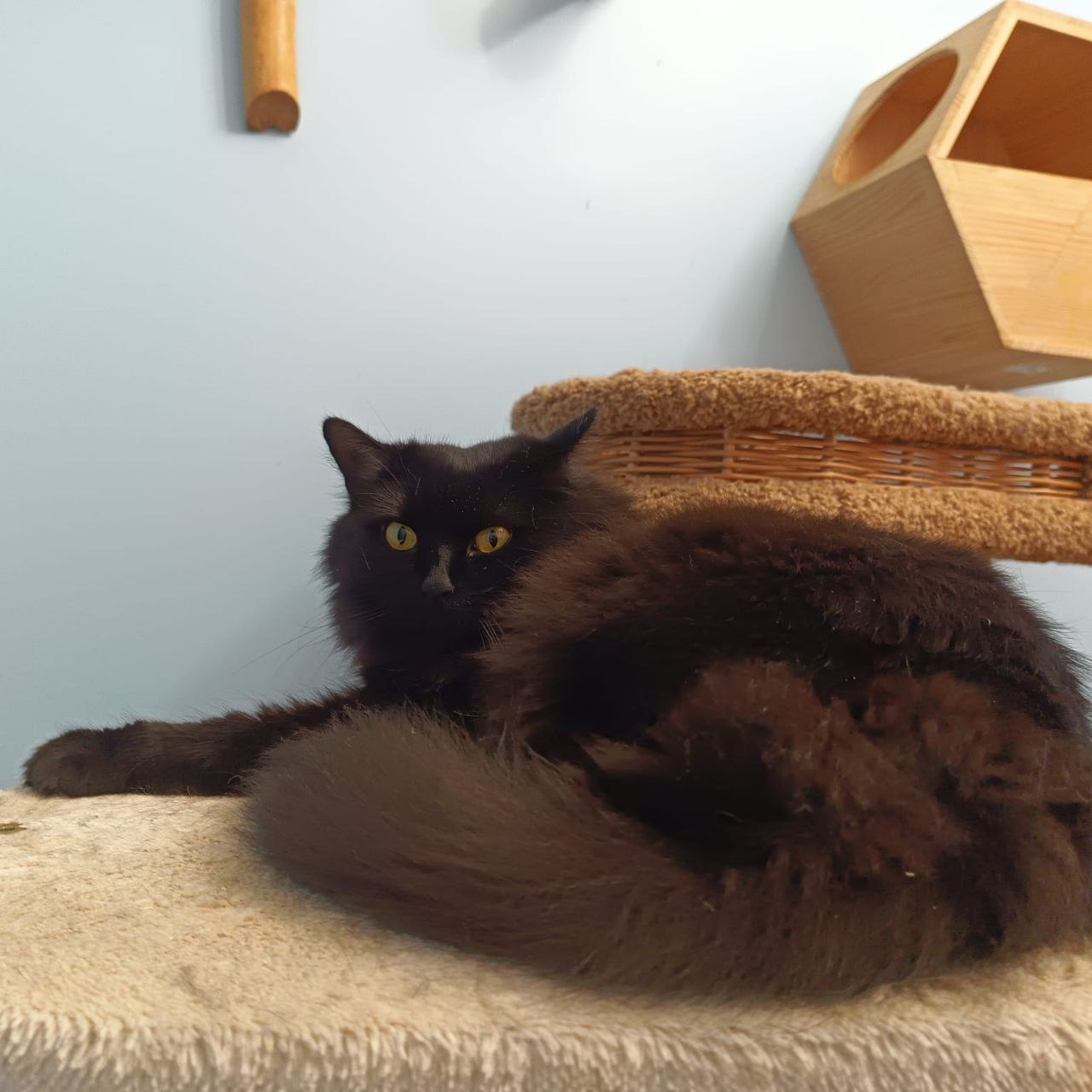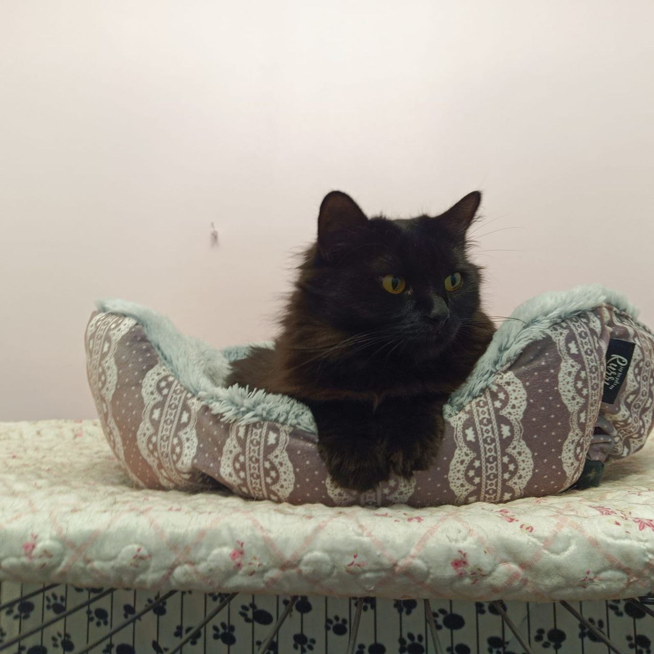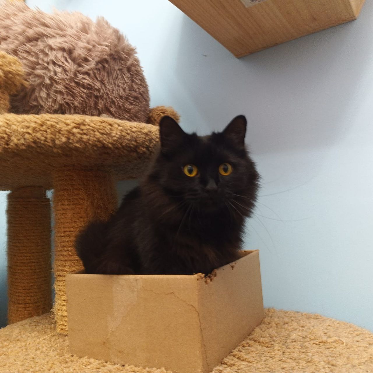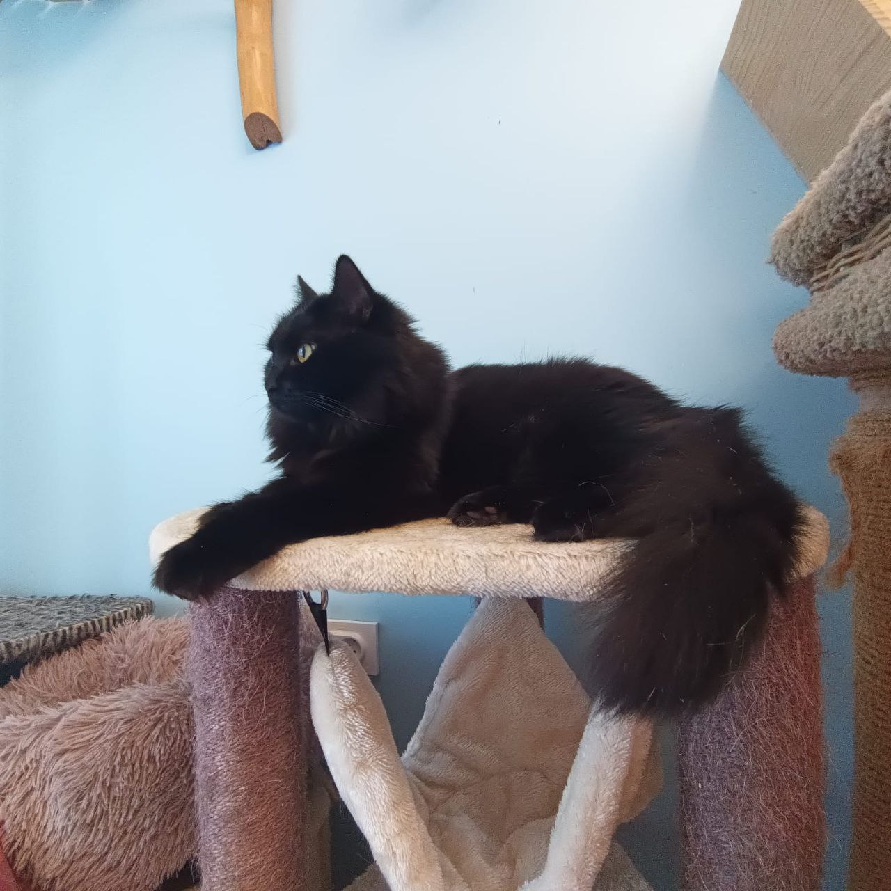 Hat sie sich erstmal eingewöhnt, ist sie eine richtige Schmusekatze, im Kitty Apartment kommt sie mittlerweile schon schnurren auf einen zu.