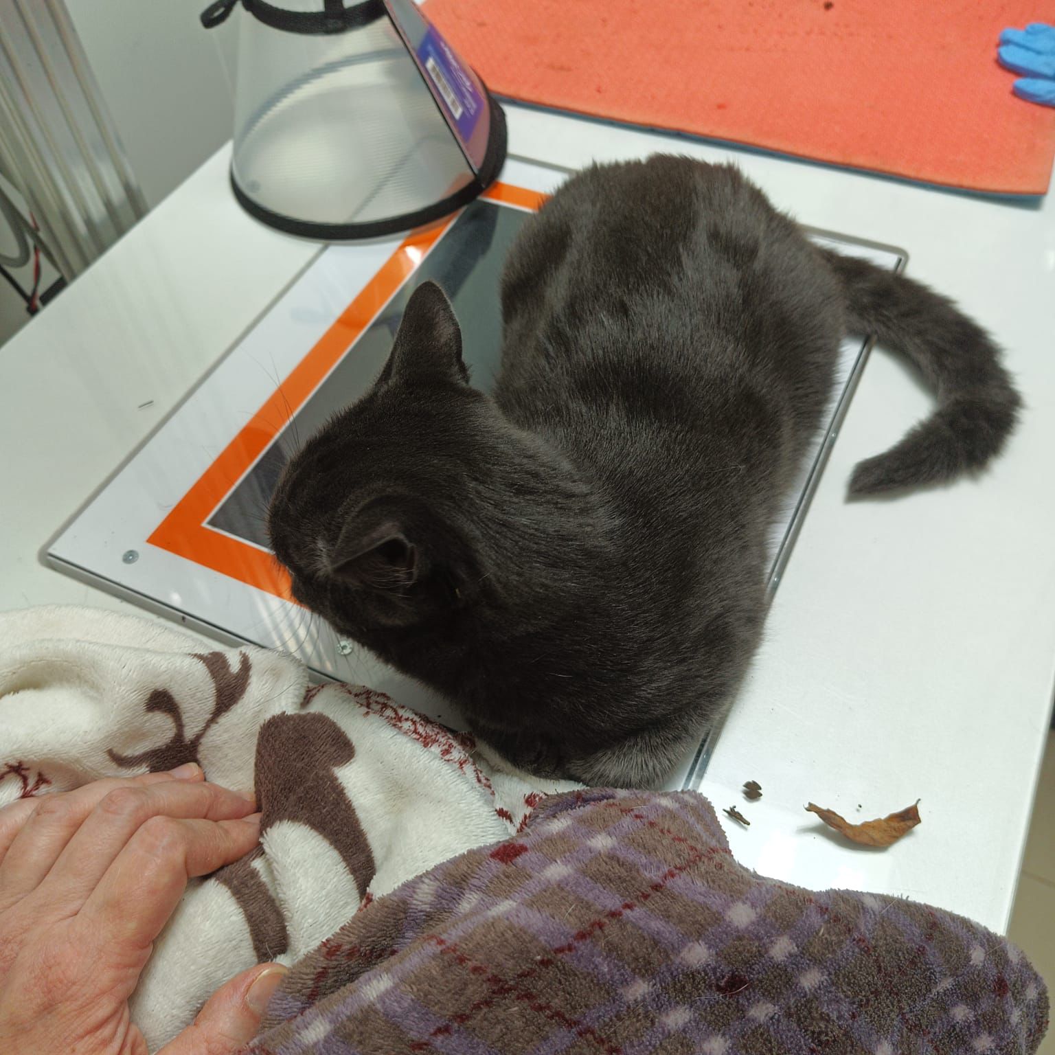 Der Kater wurde in der Tierklinik stationär aufgenommen, er ist unter Beobachtung.Soeben meldete sich der behandelnde Arzt nochmal und schrieb, dass sein Allgemeinzustand stabil sei. „Aufgrund des starken Stresses zeigt er keinen Appetit; zur Appetitanregung erhielt er Mirtazapin-Tabletten. Urinieren wurde bisher nicht beobachtet. Wir haben ihn aus dem Käfig gelassen; er bewegt sich ohne Lahmheit.“Das klingt doch schonmal garnicht so schlecht 🍀🙏